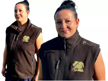 Fleecová vesta v černé barvě hřejivý materiál celopropínací zip s krytkou brady kapsy se zipem dolní lem na stažení elastickou šňůrkou kontrastní prvky Materiál: 100% polyester
