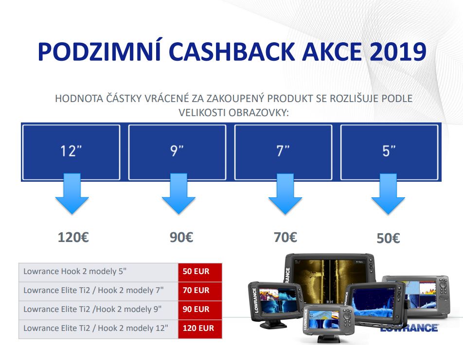3)Navštivte www.lowrance.com/cashback a vyplňte svou žádost o zaslání penězní částky nazpět. Pro správné dokončení Vaší žádosti je nutné připojit :