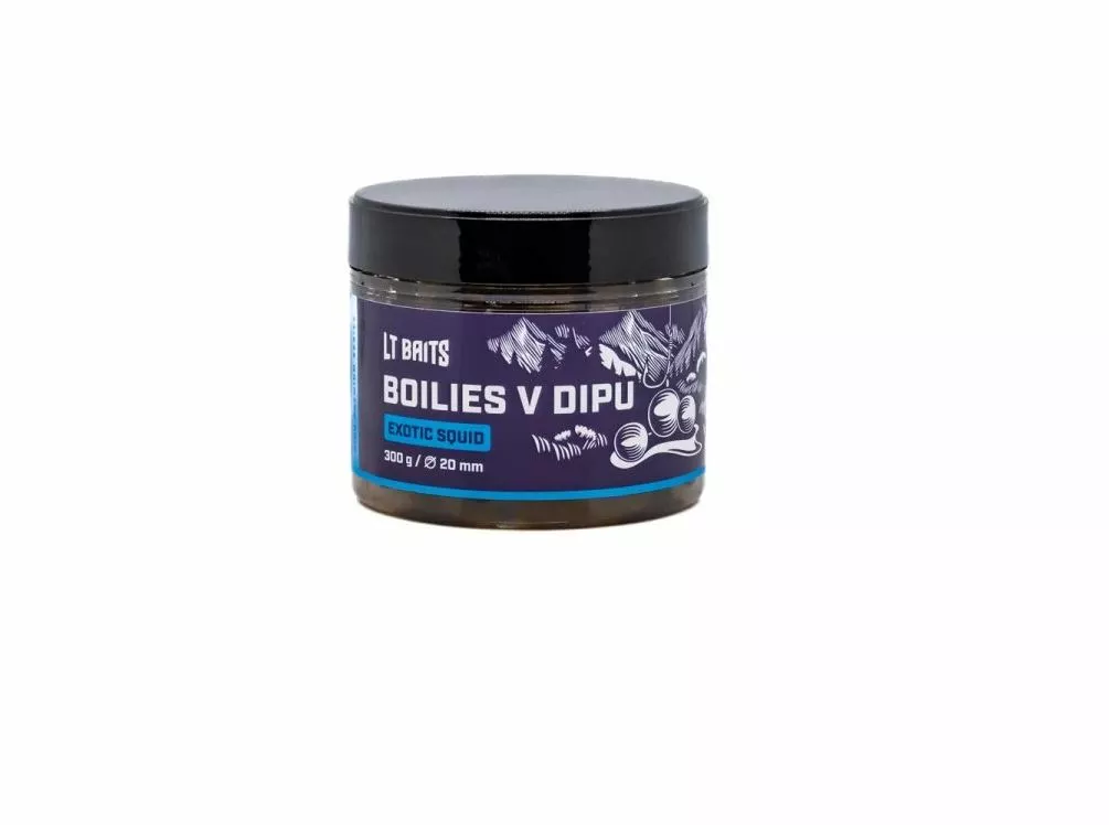 LT BAITS Exotic Squid Dipované Boilies 300G