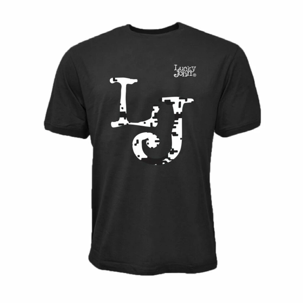 Kvalitní stylové triko s krátkým rukávem v černé barvě s výrazným logem značky Lucky John. Materiál: 35% bavlna, 65% polyester