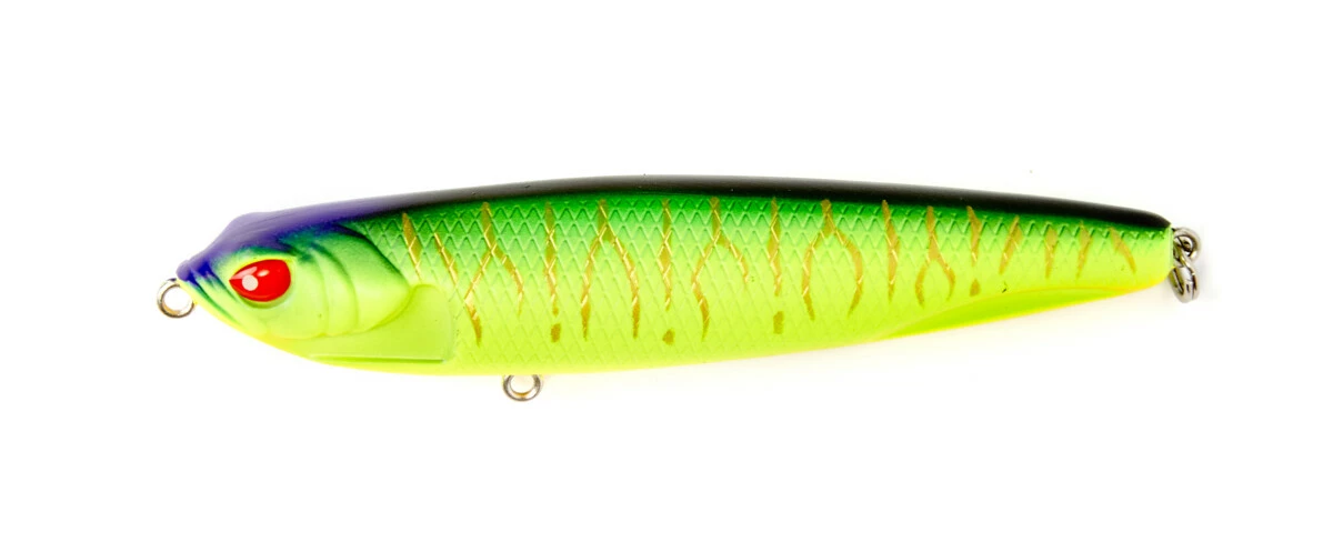 Wobbler Lui Pencil 98 je určen pro mělký lov v silně zarostlé oblasti řek, jezer a nádrží, kde použití jiných návnad není možné. Hlavním rysem těchto návnad je jejich chování na vodě - díky tvaru těla velmi snadno kloužou po hladině, plynulé pohyby ze strany na stranu připomínají imaginárního hada. Toto chování přitahuje i pasivní dravce. Použitím systému pevných kuliček uvnitř, wobler dosahuje vynikajících letových vlastností. Vybaven vysoce kvalitním trojháčky japonské výroby. Délka: 9,8cm, hmotnost: 8g.