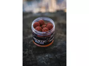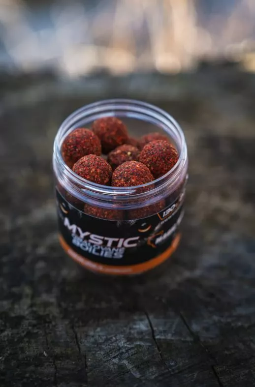 Toto chytací boilies není jen obalené v práškovém dipu. Náš chytací Mystic je přímo oplášťovaný super atraktivní vrstvou, která ve vodě okamžitě vytváří oblak barvy a vůně…. Uvolněné kousky pláště vzlínají a plavou k hladině a lákají i ryby ze sloupce. Barva a esence zatraktivňují lovné místo. Po rozpuštění pláště začíná fungovat střed, a to je naše chytací boilies. Toto prostě musíte vyzkoušet….