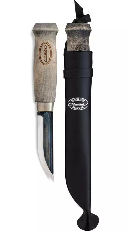 Čepel nože je vyrobená z uhlíkové oceli a lze jí snadno přebrousit na původní ostrost. Část čepele není leštěná s původní tmavou strukturou oceli.