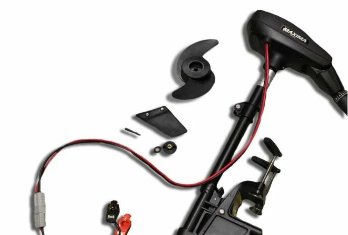 Elektromotory Maxima disponují nízkou spotřebu a dlouhou výdrží ve vodě. Elektromotor se ovládá pomocí řídící tyče. Součástí balení jsou kvalitní bateriové svorky pro zajištění pevného připojení k baterii a minimalizaci ztráty výkonu. Připojovací kabely jsou vybaveny konektorem značky Anderson. V případě potřeby tak můžete motor pohodlně a rychle odpojit od baterie, aniž byste museli demontovat bateriové svorky. Díky Anderson konektoru můžete také k baterii velmi jednoduše připojit jiná zařízení, jako např. sonar či echolot.