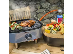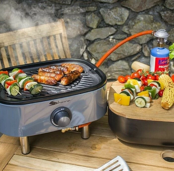 Stylový přenosný propan-butanový gril je určen k venkovní přípravě pokrmů.