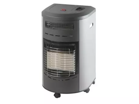 Zdrojem je běžná 10 kg PB láhev nebo elektrická síť 230 V, která zefektivní vytápění místností i díky vestavěnému ventilátoru. Kamna jsou vybavena: hlídačem spalin, termopojistkou, pádovou pojistkou, tři polohy výkonu plynu a dvě polohy výkonu elektrického napájení, kolečka, piezozapalování.