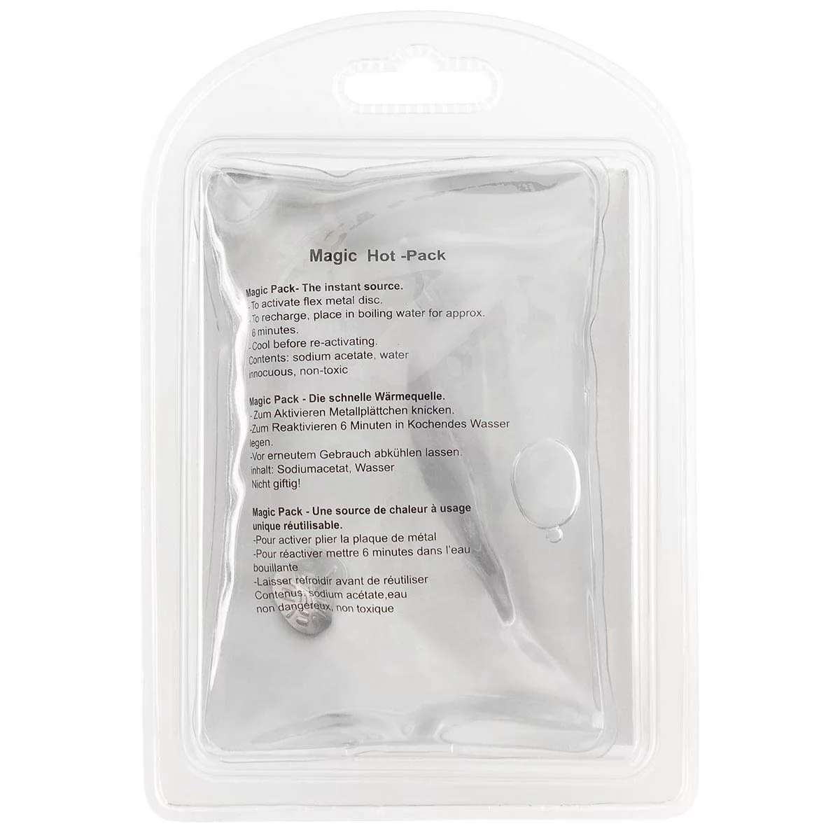 Okamžitý zdroj tepla, vícenásobné použití, aktivuje se kovovým kolečkem uvnitř sáčku, poskytuje teplo cca 1 hodinu.
