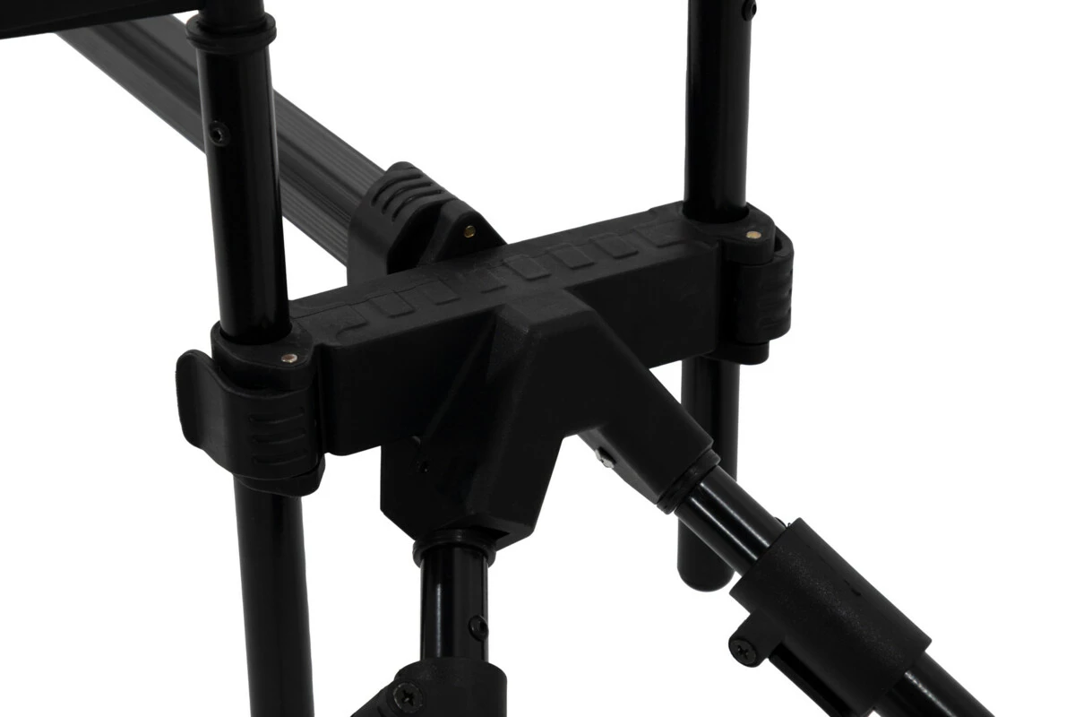 Vyroben spojením hliníku s ABS plastem odolným proti poškození. Vybaven nastavitelným rámem, teleskopickými nohami a hrazdami na 3 pruty.
