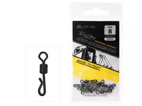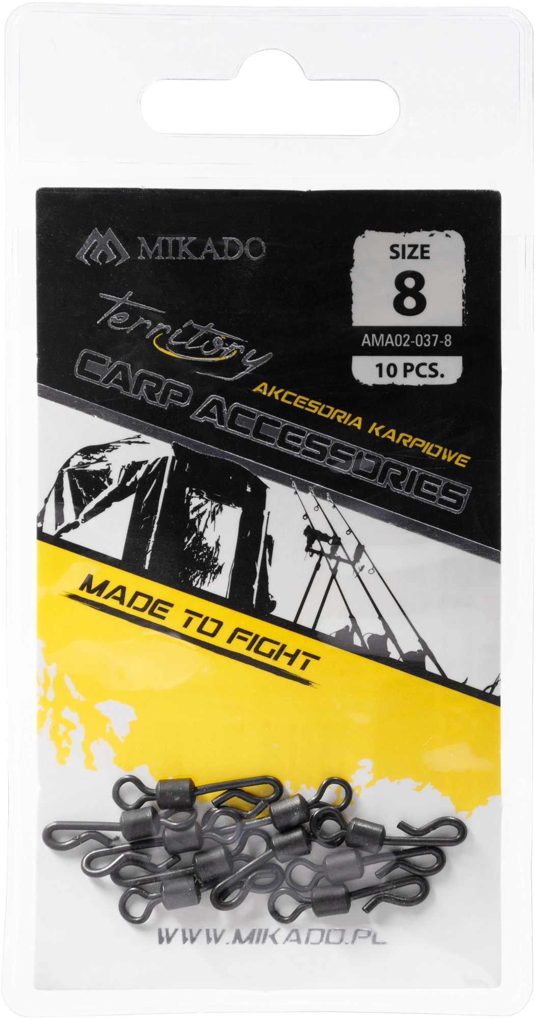 Rychloupínací obratlíky "Quick Swap". Obratlíky slouží pro rychlou výměnu hotových návazců. Vyrobené z kvalitního materiálu s matně černou povrchovou úpravou.Nosnost : 15kg Další info