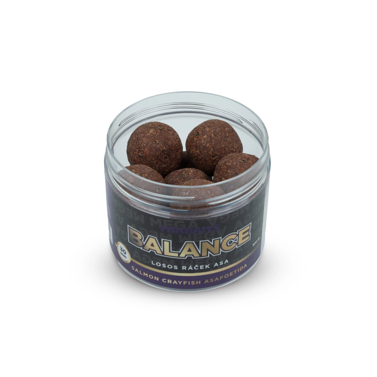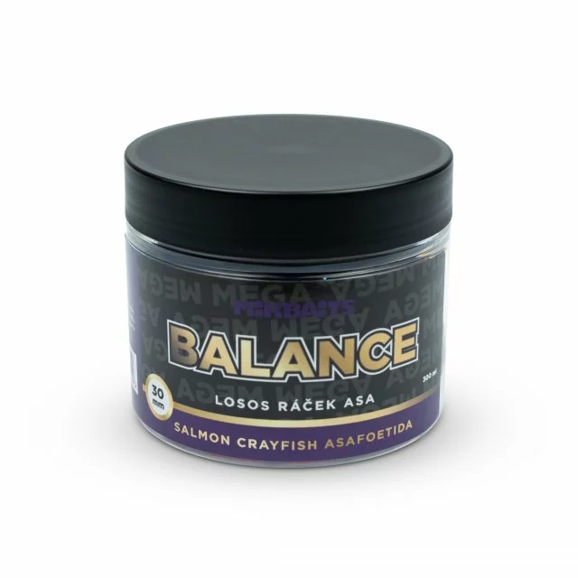 Mega Balance 30 mm jsou skvělé nástrahy k cílenému lovu velkých kaprů a všude tam kde potřebujete omezit záběry nechtěných ryb. Vyrábějí se ze stejných směsí a AK jako boilie též příchutě, navíc jsou ale do nich přidány extra lehké složky. Výsledná nástraha má stejnou barvu a vůni jako návnady, je však neutrálně vyvážená nebo může lehce plavat. Můžete jí nastražit tak jak je a ona po chvíli až do sebe přijme vodu zlehka dosedne na dno, nebo ji předem „dovyvážit“ dipem stejné příchutě nebo tekutou potravou kterou jí necháte nasáknout alespoň několik hodin. Nedávejte však příliš tekutin, aby Balance zůstala lehčí než standardní boilie.