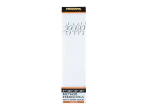 Method feeder návazce se zapichovacím hrotem jsou určené pro malé Pop-up, Wafters, Mini boilie či plovoucí i potápivou kukuřici. K výrobě jsme použili japonské feeder háčky a fluorocarbon o délce 20cm. Další info