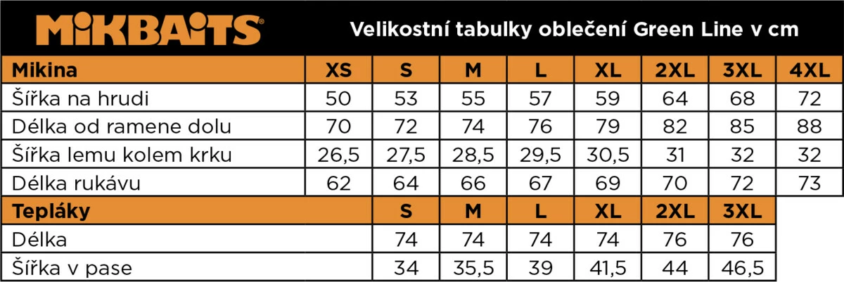 Kolekce oblečení Mikbaits Green line zahrnuje velmi komfortní mikiny s kapucí s vnitřním vzorem. Jsou z velmi příjemného pohodlného materiálu, mají pohodlný střih, velkou kapsu, krátký zip ve výstřihu a stahovací lem kapuce. Vše ve velikosti M až 4XL.