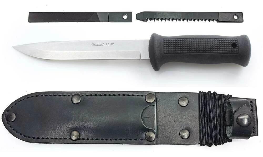 Čepel nože je vyrobena z kvalitní nerezové oceli typ 420 s tvrdostí 53-55 HRC, délkou158mm a má klínový výbrus. Držadlo dýky je z tvrzené pryže, která svou přilnavostí k dlani zabraňuje snadnému sklouznutí. Má otvor pro uchycení příšlušenství (pilka, pilník, bodec) a zajišťovací otvor pro šňůru kolíčkem. Celková váha nože je 0,206kg.