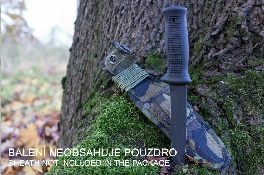 Čepel nože je vyrobena z kvalitní uhlíkové oceli typu GR 1070 s tvrdostí 55-57 HRc s černěním, délkou 140 mm a má klínový výbrus. Další info