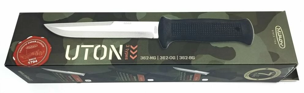 Delší čepel má pouze UTON AZ. Držadlo dýky je vyrobeno z tvrzené pryže, která svou přilnavostí k dlani zabraňuje snadnému sklouznutí. Má otvorpro uchycení příslušenství (pilka, pilník, bodec) a zajišťovací otvor pro šňůru paracord s kolíčkem. Celková váha nože je 0,165 kg. Tento UTON musí mít pouzdro bez planžetové vložky, která by mohla setřít černění čepele.