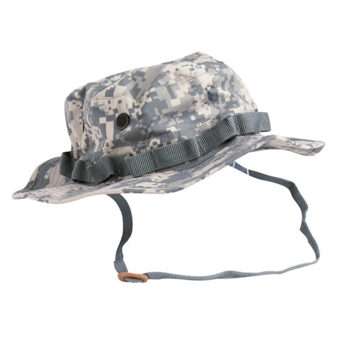 Nepromokavý klobouk vojenského vzhledu.