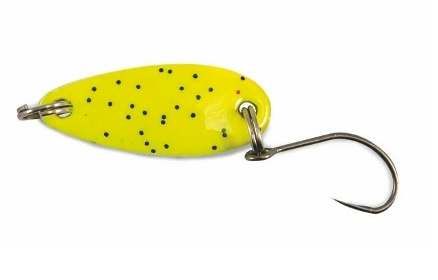 Tato třpytka pracuje skvěle ve stojaté vodě i v proudu. Díky svému tvaru létá opravdu daleko, a přitom skvěle chodí i při pomalém vedení. Vhodná pro lov lososovitých ryb, ale milují ji i okouni nebo tloušti. Velikost: 3 g (3 cm). Barva: žlutá, černé tečky.