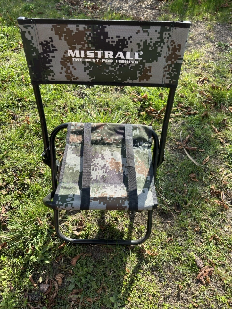 Mistrall rybářská židle s opěrátkem a taškou, maskáč VYSTAVENÝ KUS