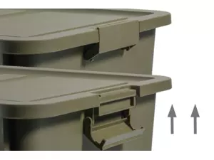 Robustní zámky víka jsou snadno ovladatelné a nepřekážejí ani v případě manipulace s otevřeným boxem bez víka. Při uzavření zámky bezpečně drží víko na svém místě i v případě otřesů nebo při převrácení boxu. Prázdné boxy je velmi snadné skladovat - pasují totiž jeden do druhého.