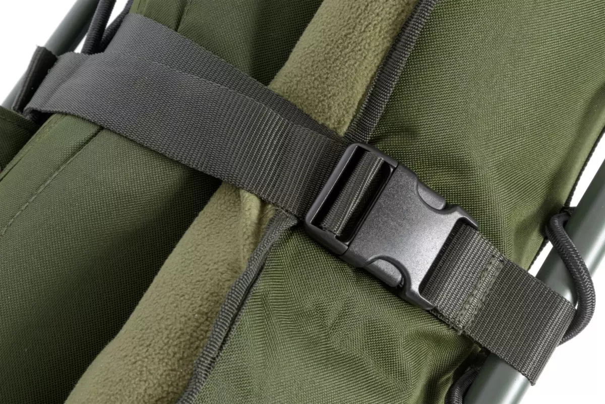 Potah lehátka využívá kombinaci velmi pohodlného a hřejivého fleece na polštáři ve střední části s vysoce odolným nylonem na okrajích a ve spodní části.