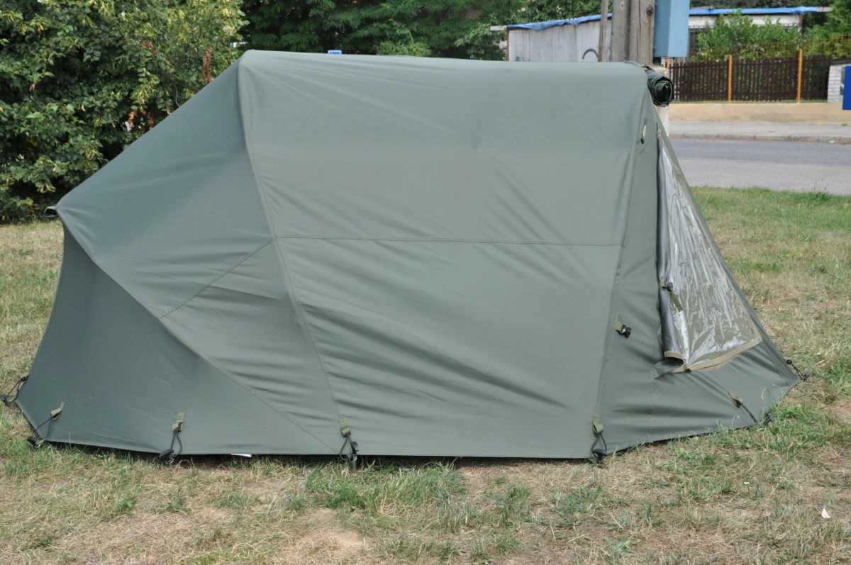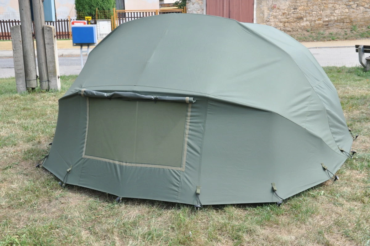Samozřejmostí je použití stejně dimenzovaného materiálu jako na bivaku, sada kolíků, rozměrné zadní okno, třívrstvá přední okna a držáky prutů v přední části bivaku.