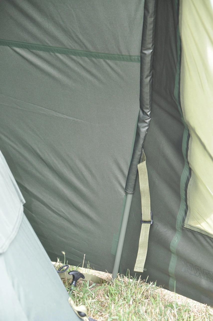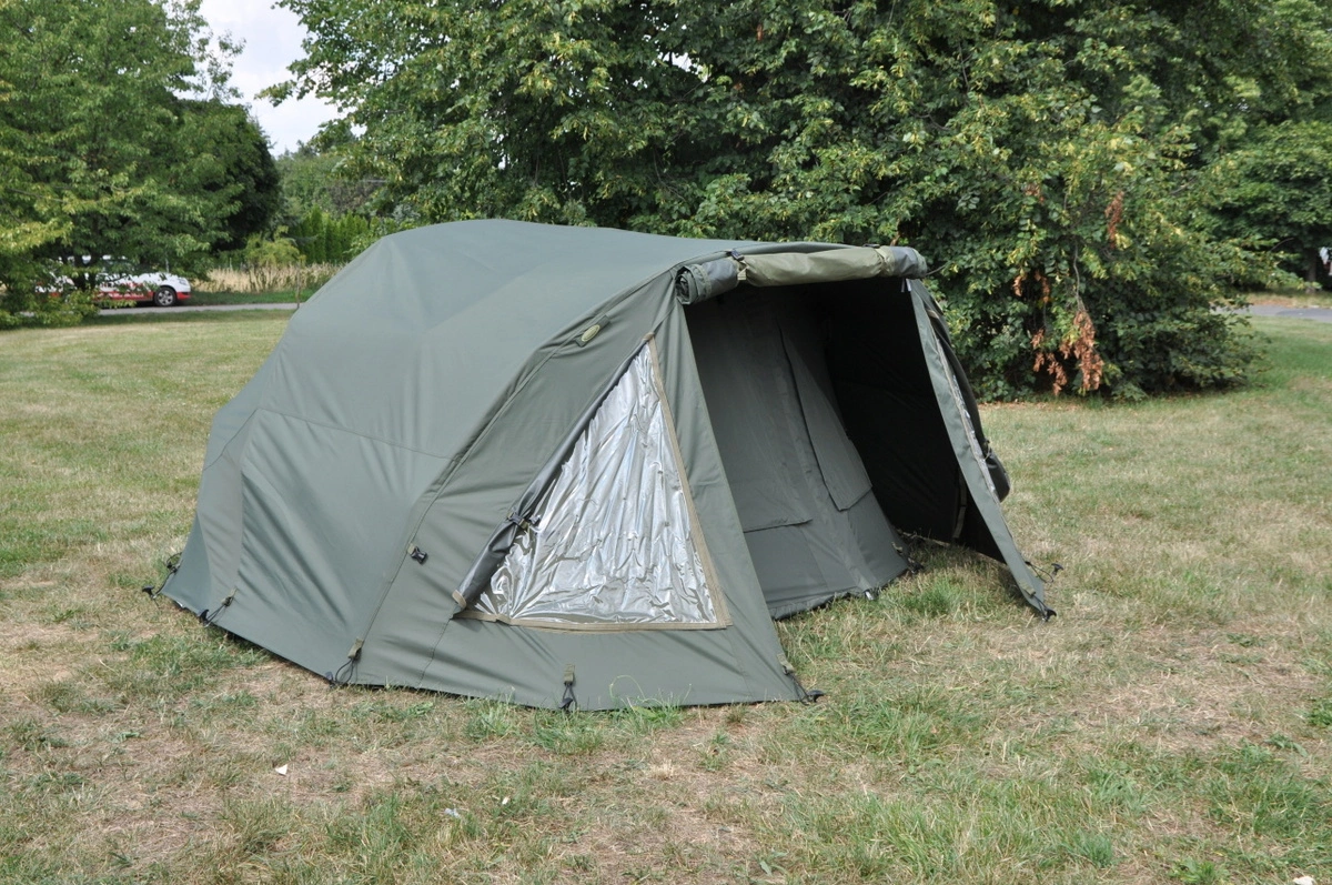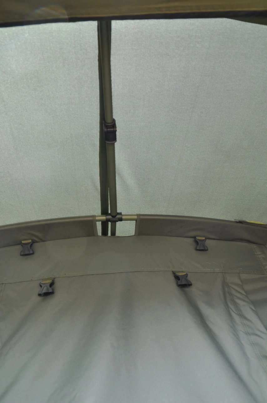Uvnitř uložené doplňkové žebro a rozpěrná tyč umožňují při použití tohoto přehozu vytvořit velice prostornou předsíň i přesto, že bivak samotný nemá kšilt ani jinou konstrukci pro vytvoření předsíně.