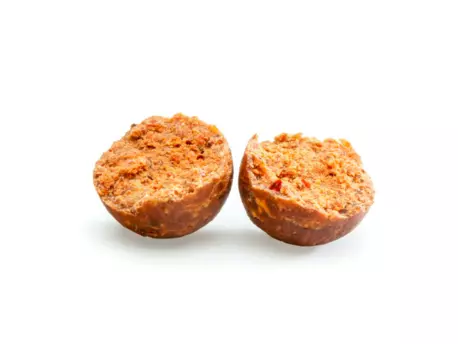 Toto netradičně postavené boilies představuje skutečně těžký kalibr pro vaše rybářské výpravy. Základ tvoří nejkvalitnější rybí moučky, doplnění výraznou porcí krillu a krevet. Chuť je zpočátku velmi sladká a následně přichází v silně pálivou. Intenzivní aroma mořských komponent a kořeněných výtažků je dokresleno mírným nádechem ovocného mixu vybraných bobulovin. Tato nástraha během ročního testování na nejrůznějších lokalitách překonala veškerá očekávání. Výborné výsledky dává celoročně včetně brzkého jara.