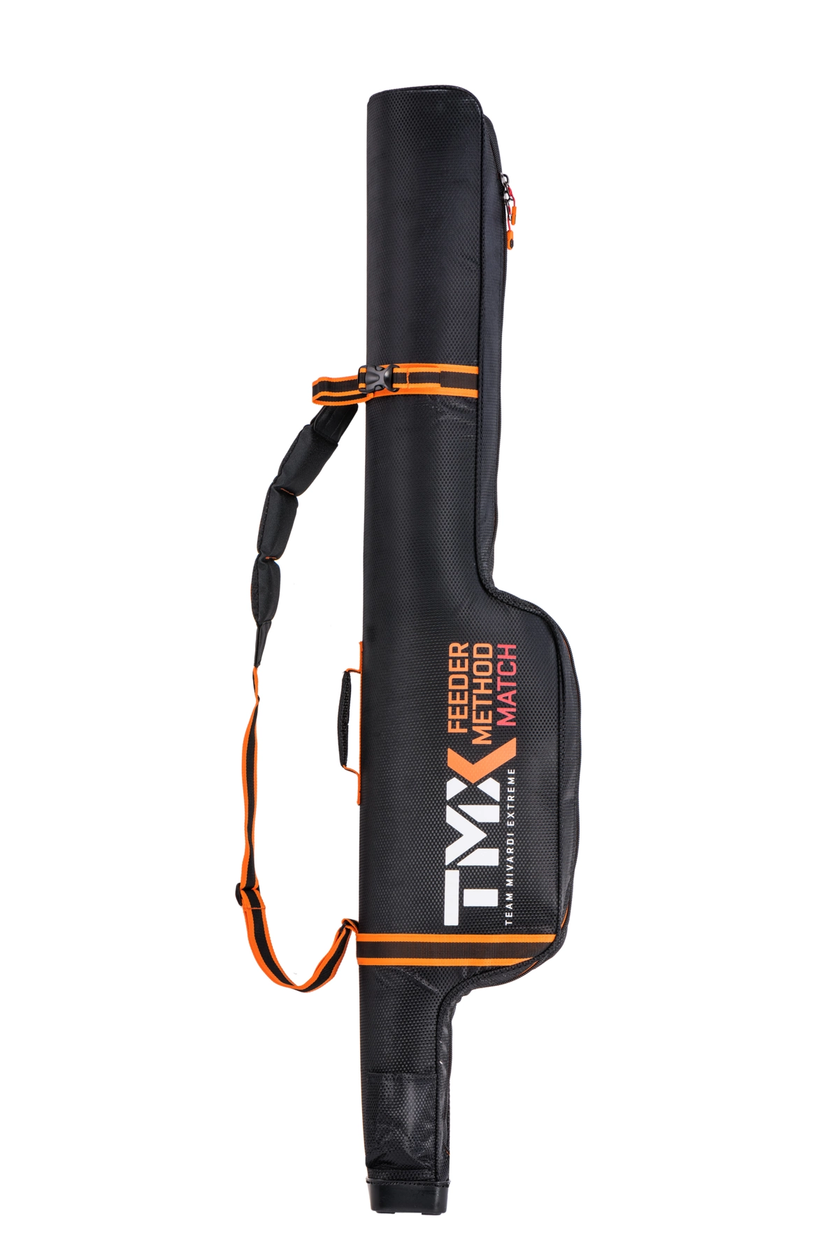 Vnitřní prostor je polstrovanou přepážkou rozdělen na dvě hlavní komory. Toto pouzdro je navrženo jako multifunkční obal pro přepravu dvou až čtyř prutů s maximálním důrazem na jejich ochranu. Zároveň umožňuje uložení velkého množství dalšího příslušenství. Díky tomu se snižuje celkový počet zavazadel, kterré musíte nosit s sebou. Pouzdro je osazeno polstrovaným popruhem přes rameno i držadlem pro komfortní nošení v ruce. Obaly tašky a další zavazadla série TMX jsou vyrobeny z prémiového, extrémně silného materiálu s luxusním designem ve stylu splétaného carbonu. Tento materiál je zcela nepromokavý a výborně omyvatelný. Na celé sérii TMX jsou použity zátěžové zipy nejvyšší kvality s praktickými táhly Mivardi.