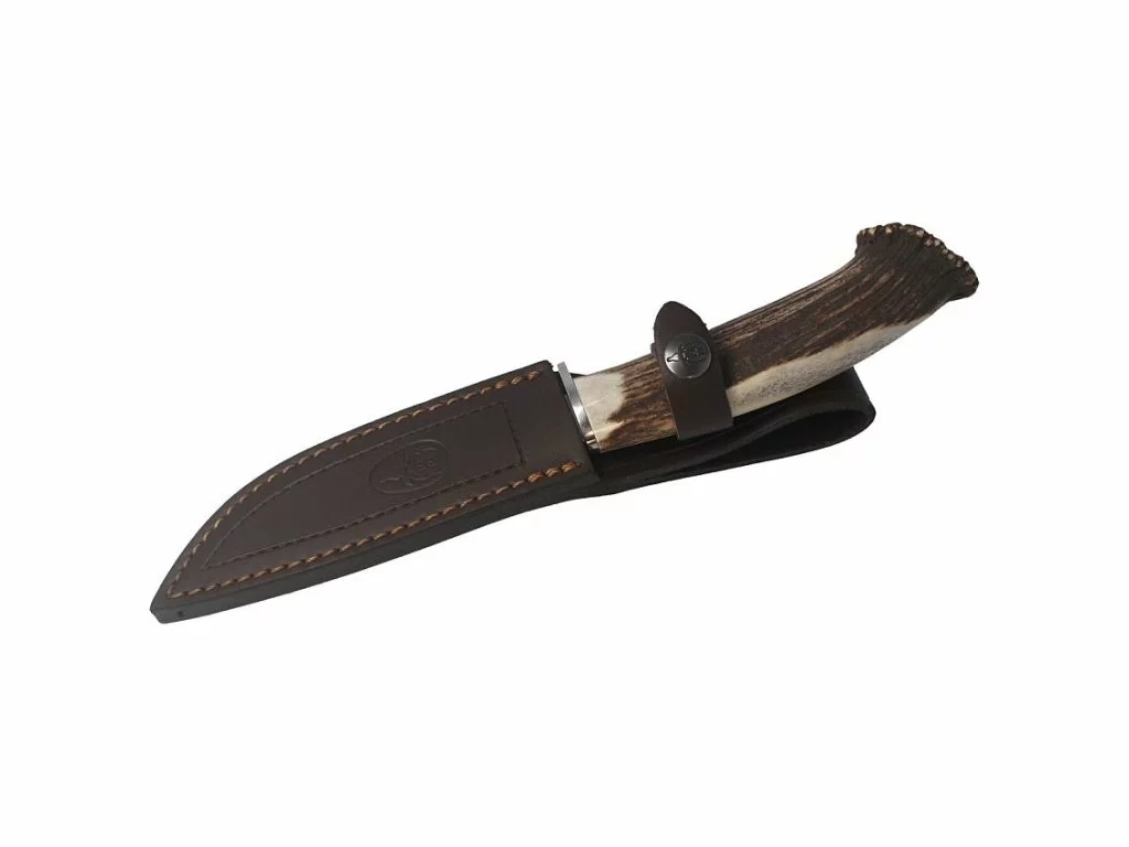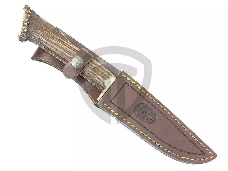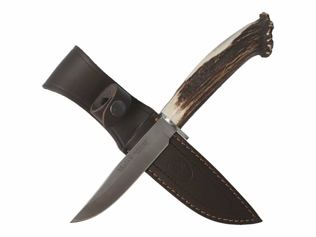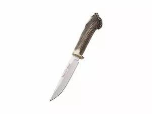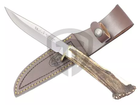 Štíhlý nůž vhodný pro lov a pobyt v přírodě od španělské firmy Muela. Čepel je vyrobena z kvalitní molibden vanadiové oceli o tvrdosti až 61 HRC. Pro ochranu prstů je nůž opatřen mosaznou záštitou. Rukojeť je vyrobena z parohu a je zakončena růžicí. Nůž skvěle sedí v ruce a velmi příjemně se drží. Je dodáván s hnědým koženým pouzdrem.