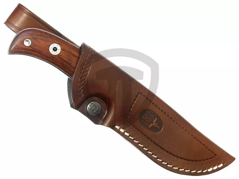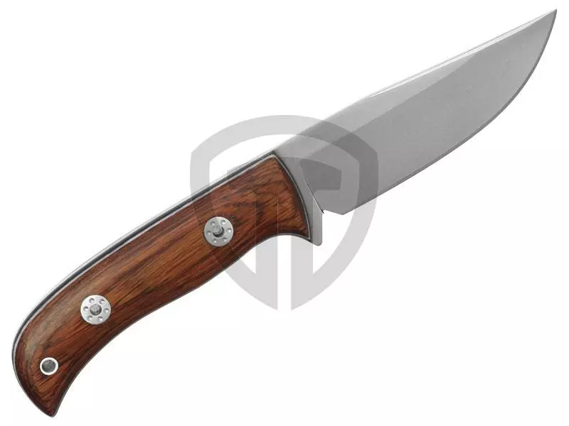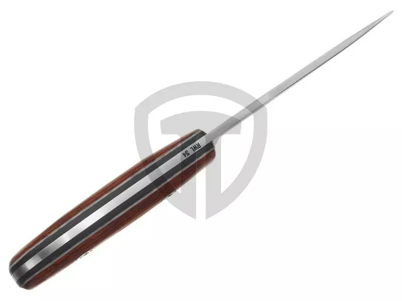 Nůž je vyroben z jednoho kusu špičkové práškové oceli RWL 34, která dosahuje tvrdosti 57 - 62 HRC. Čepel má odolný klínový výbrus. Střenky jsou z vrstveného dřeva Rosewood a pod nimi jsou černé a bílé příložky, které po obvodu tvoří elegantní linky. Na konci rukojeti je otvor na závěsnou šňůru. Nůž je dodáván s koženým pouzdrem.