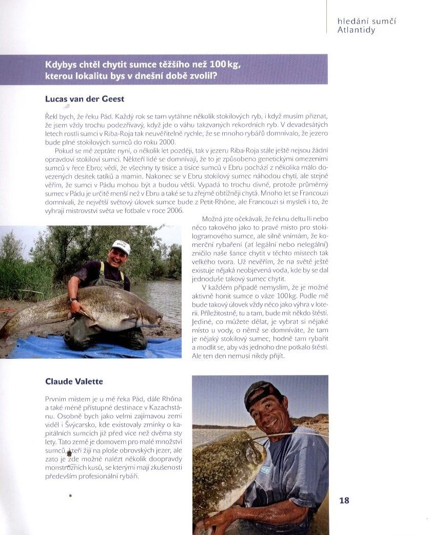Co dělá knihu zajímavou a výjimečnou je skutečnost, že své zkušenosti nepředává jen autor, ale celá řada jeho přátel. V knize naleznete názory a tipy těch největších sumcařů dnešní doby. Ať už je to Olivier Portrat, Yuri Grisendi, Xavier Vella, Claude Valette, Arnout Terlouw, Stefan Seuss a další.