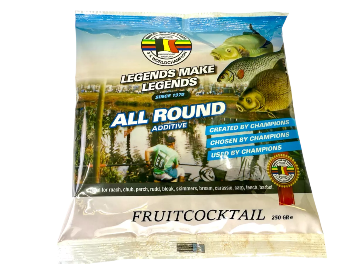 Van Den Eynde Fruit Cocktail je široce používané a velmi oblíbené aditivum se silnou, příjemně sladkou a ovocnou vůní. Jedná se o všestranné aditivum, které lze použít s jakoukoli návnadou. Přidání ovocného koktejlu nejen činí krmivo sladším, ale také přitažlivější, jak z hlediska chuti, tak vůně. Poskytuje rybářům širokou škálu možností, které vyhovují jejich individuálním potřebám a preferencím. Můžete si vybrat, zda jej přidáte do směsi na začátku smáčení, nebo si malé množství ponecháte na vmíchání do sušiny těsně před krmením pro extra efekt. Ovocný koktejl lze také použít k zatraktivnění návnad na háčku (jako jsou červi, koule, pelety atd.). Ovocný koktejl je vhodný pro všechny druhy bílých ryb, zvláště je však určen pro cejny a kapry. Doporučujeme použít 250g na 4kg návnady.