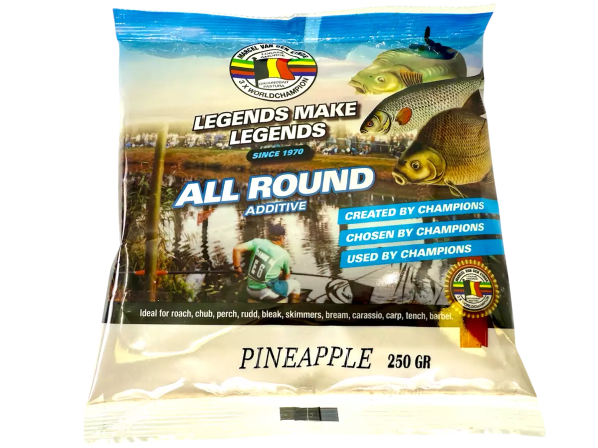 Prášková aditiva jsou nejběžněji používanými přísadami do návnad. Pineapple je velmi bohatá přísada se silnou, příjemně sladkou ovocnou vůní, kterou lze přimíchat do jakéhokoliv krmného mixu. Posilovač směsi dodá silnou extra sladkou příchuť, čímž se směs stane ještě aromatičtější a atraktivnější. Toto množství 250g můžete použít na 2 až 4 kg návnady.