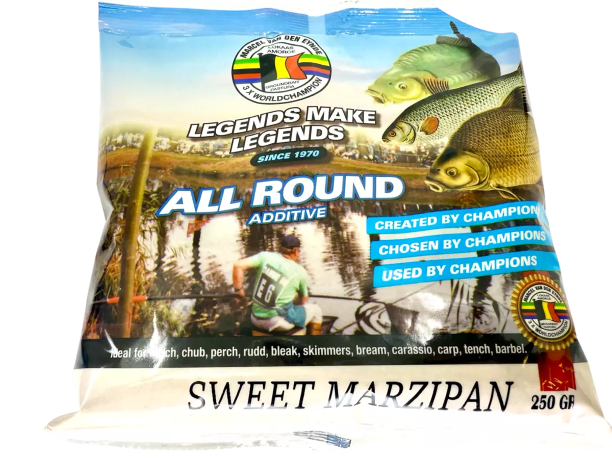 K tomu si musíte přivonět, ale ještě lepší je namíchat do Vaší směsi, protože tento posilovač ryby milují§ Mistři světa v lovu na plavanou a feeder namíchali opět dokonalý posilovač. Sweet Marzipan Je perfektní přísadou do veškerých vnadících směsí, se kterou směs získá výrazné aroma. Přidejte do suché vnadící směsi, ještě před navlhčením. Jedno balení posilovače je určeno na 5kg (pro závodní rybolov), pro běžný sportovní rybolov postačí na 10kg. Posilovač je také dobrou přísadou do nástrah, nebo do boilie směsi a pelet. Na Marzipan reagují všechny druhy kaprovitých a bílých ryb. Doporučujeme!