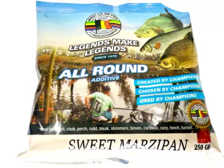 K tomu si musíte přivonět, ale ještě lepší je namíchat do Vaší směsi, protože tento posilovač ryby prostě zbožňují. Mistři světa v lovu na plavanou a feeder namíchali opět dokonalý posilovač. Sweet Marzipan je perfektní přísadou do veškerých vnadících směsí. Ať už to je směs na plavanou, krmítková směs nebo method feeder, Vaše návnada tím získá intenzivnější atraktivitu. Přidejte do suché vnadící směsi, ještě před navlhčením. Jedno balení posilovače je určeno na 5kg (pro závodní rybolov), pro běžný sportovní rybolov postačí na 10kg. Posilovač je také dobrou přísadou do nástrah, nebo do boilie směsi a pelet. Na Marzipan reagují všechny druhy kaprovitých a bílých ryb. Doporučujeme!