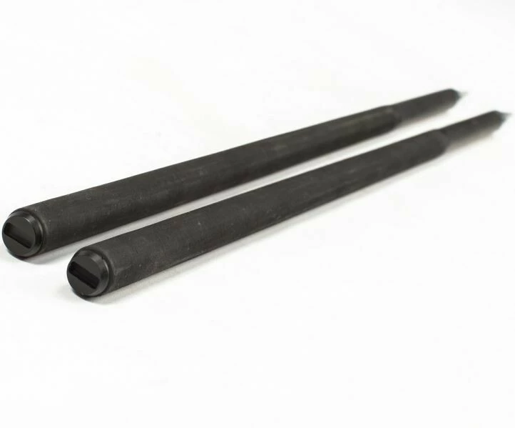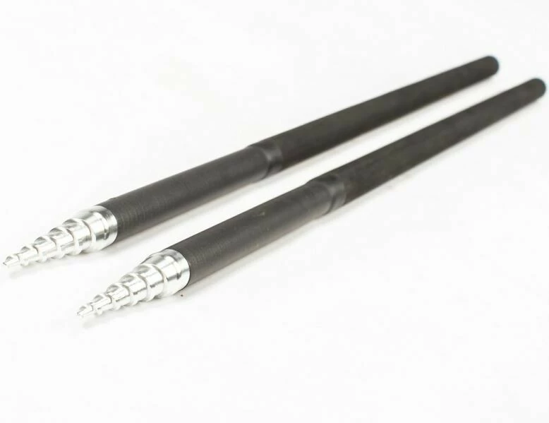 Karbonové ultratenké tyče s připevněnými hliníkovými hroty pro snadné zapíchnutí do země.