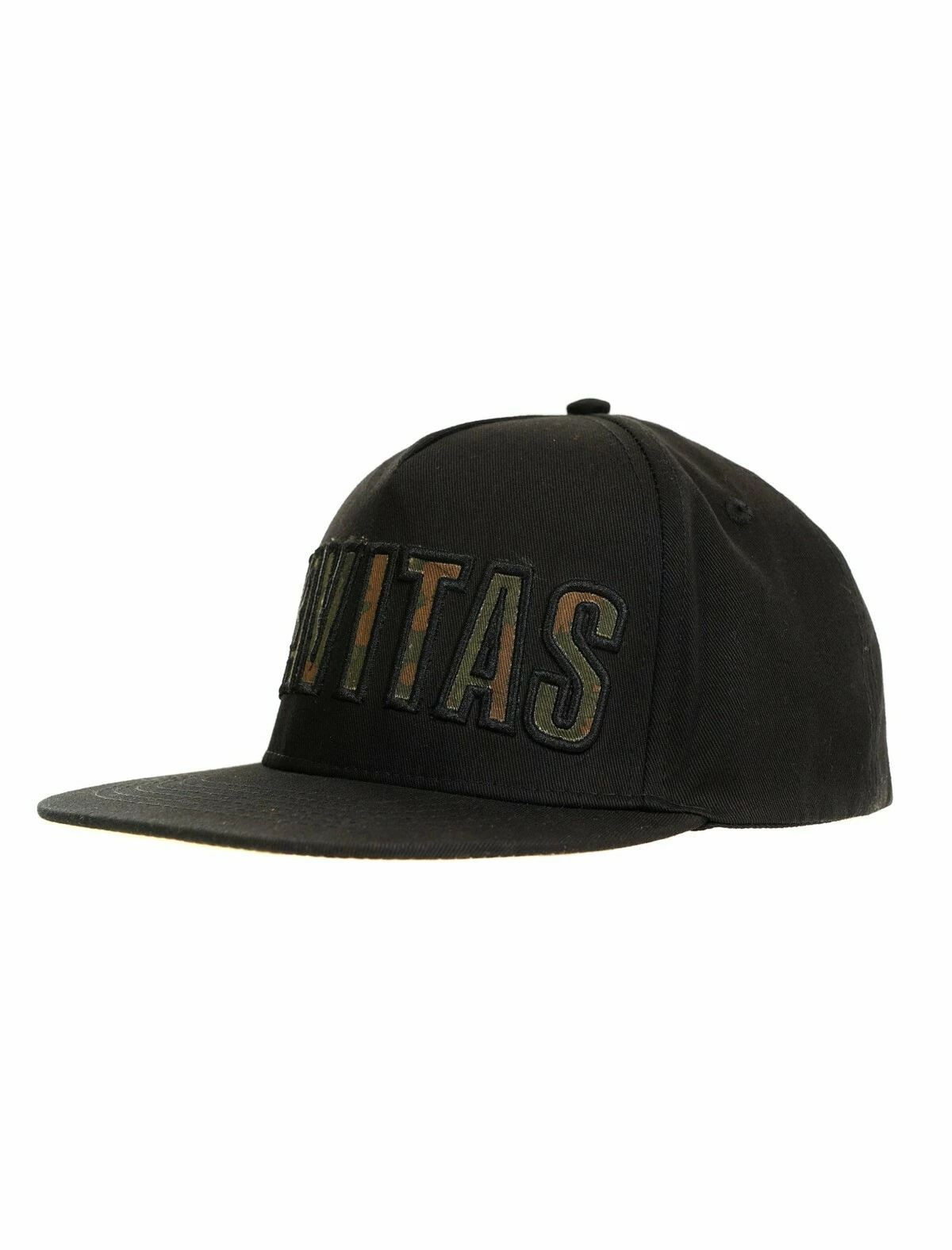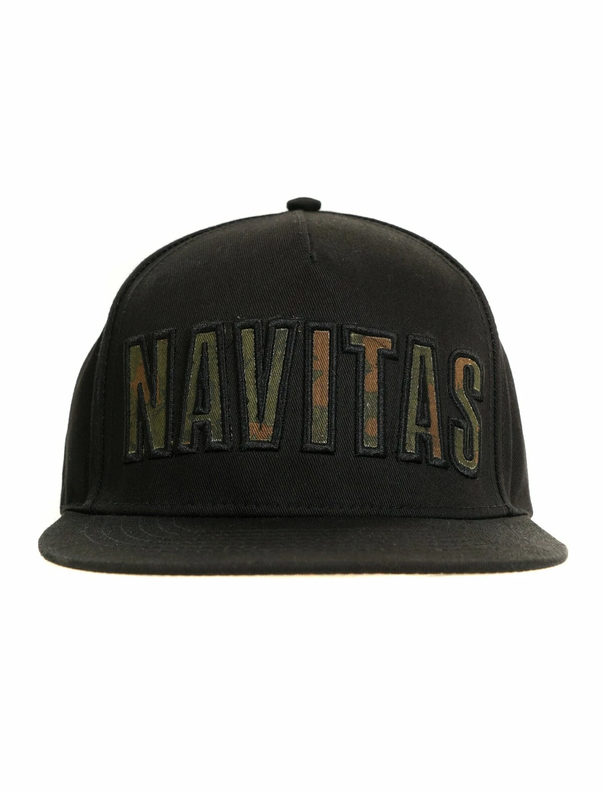 Snapback kšiltovka v černém provedení s Navitas Camo výšivkou. Vlastnosti: • Materiál: 100% bavlna • Výšivka Navitas v Camo designu • Camo design na spodní straně kšiltu • Nastavitelný obvod • Univerzální velikost