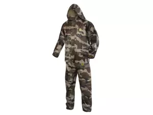 Do deštivých dnů je zde nepromokavý komplet Delphin PROOF, který vás dokonale ochrání před nepřízní počasí a překvapí svými kompaktními transportními rozměry. Je vyroben z voděodolné pogumované tkaniny s podlepenými švy a maskáčovým vzorem.