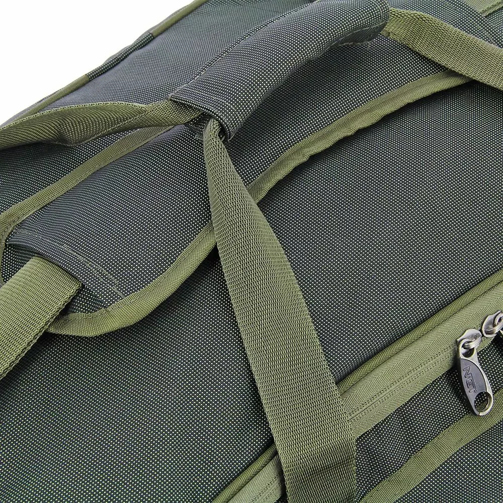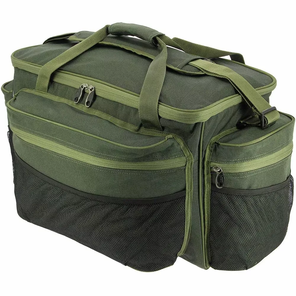 Velká přenosná taška pro rybáře s prostornou hlavní přihrádkou a třemi velkými vnějšími kapsami na zip a ze síťoviny. Samozřejmostí jsou polstrované rukojeti a nastavitelný ramenní popruh s polstrováním.