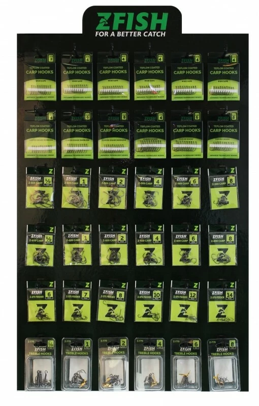 Zfish tablo na rybářské háčky je ideální pro prezentaci a prodej háčků na vaší kamenné prodejně. Tablo obsahuje 36ks plastových háků pro zavěšení rybářských háčků.