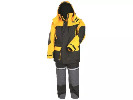 Nepromokavý zimní oblek s funkčním designem, vyrobený z plovoucího materiálu pro zvýšení bezpečnosti na tenkém ledě a při rybaření ze člunu.Přesný a dobře promyšlený střih zajišťuje velkou volnost pohybu.BUNDANepromokavý materiál, laminátové švy, odnímatelná kapuce s kšiltem na zip, límec s fleecovou podšívkou, dvě velké kapsy, kapsy na ruce, neoprenové manžety, reflexní prvky, obousměrný zip s ochrannou podšívkou.KALHOTYNastavitelný bederní pás, dvě boční kapsy, stahovací šňůrky na nohavicích, obousměrný zip s ochrannou podšívkou.Materiál: 300D polyester s nánosem PVCVnitřní materiál: POLYESTERProdyšnost: 3000 g / m2 / 24hVodní sloupec: 4.000mmIzolace: NEOPRENE Tabulka velikosti