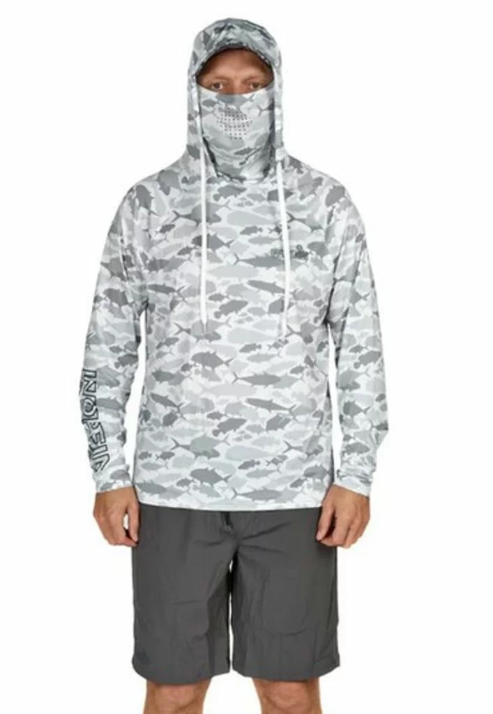 Norfin SUN PRO BARRACUDA HOODIE - Ochrana před sluncem pro rybáře Novinka pro sezónu 2024! Seznamte se s řadou Norfin SUN PRO, která přináší oblečení a doplňky navržené pro ochranu před sluncem. Norfin SUN PRO BARRACUDA HOODIE je lehké letní triko s kapucí a dlouhými rukávy, ideální pro maximální ochranu pokožky před slunečním zářením v období jaro-léto. Zůstaňte v pohodlí a chráněni i při celodenním rybaření. Vlastnosti a výhody Rychleschnoucí a prodyšný materiál: Vyrobeno z materiálu, který rychle schne a udrží vás v chladu a pohodlí i v horkém počasí. Hydrofobní vrstva: Syntetická vlákna jsou vysoce prodyšná a obsahují hydrofobní vrstvu, která efektivně odvádí pot a udržuje pokožku v suchu. Vysoký UV faktor (UPF-50): Materiál poskytuje vysokou ochranu před UV zářením, umožňuje dlouhodobý pobyt na přímém slunci. Blokuje minimálně 95 % UV záření, i když je mokrý. Ochranná kapuce: Měkká a hluboká kapuce z rychleschnoucího materiálu poskytuje dodatečnou ochranu hlavy a krku. Světlé barvy: Triko je ve světlé barvě, která minimalizuje absorpci slunečního záření a zvyšuje komfort při rybaření. Dlouhé rukávy: Pro dodatečnou ochranu paží před sluncem. Dodatečná ochrana obličeje: Konstrukce trika umožňuje ochranu i pro obličej. Materiál 90% polyester, 10% spandex