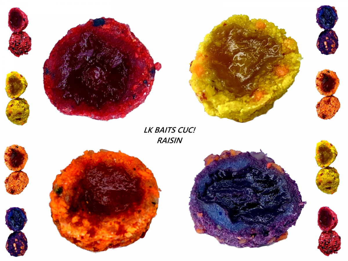 Raisin sou sladké hrozinky, které jsme naložili do přírodních ingrediencí, aminokyselin a našich nejlepších esencí. Naše aromatizované „Rozinky“ jsme oblékli do speciálního kabátku (obalu), který zabraňuje vysychání bobule v kelímku a pod vodou se naopak rychle uvolňuje do širokého okolí.