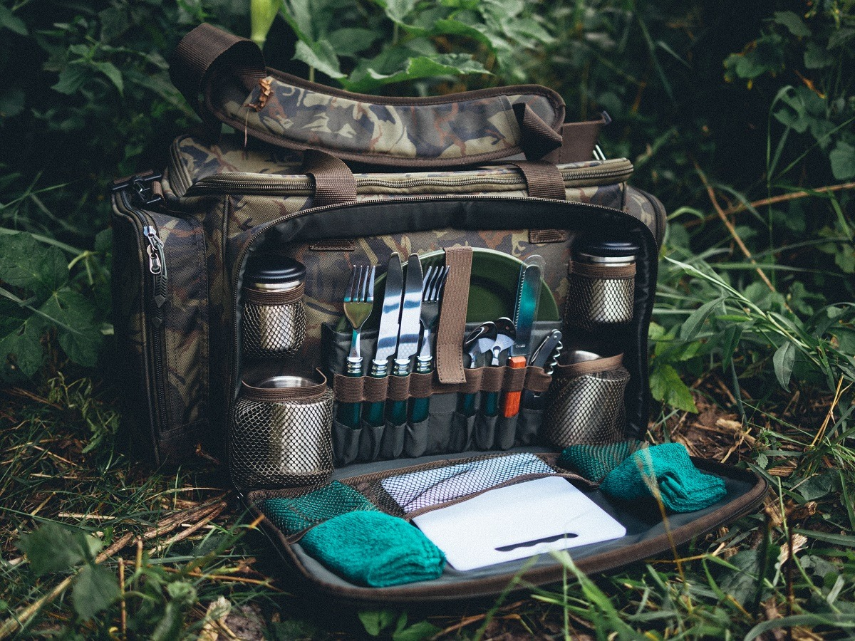 Cestovní jídelní taška, která obsahuje vše potřebné pro gurmánské zážitky u vody a v přírodě. Obsahuje talíře, příbory, hrnky a jiné potřebné věci ke stolování a hlavní část tašky je termoizolační pro uchování potravin v chladu.