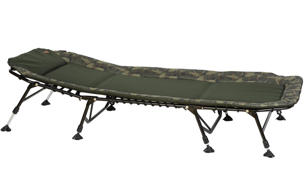 Díky inovovanému systému nastavení lehátka si každý rybář může dopnutím popruhů naladit tuhost matrace. Kvalitně zpracovaná konstrukce má vysokou nosnost do 150kg. Nožičky lehátka jsou zakončeny velkými packami proti zaboření do bláta. Každý rybář si může na tomto lehátku nastavit požadovanou tuhost matrace.