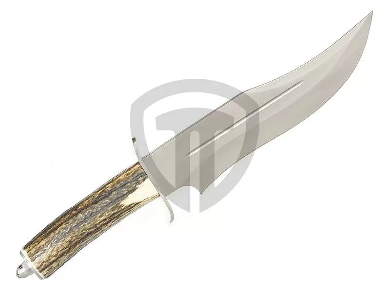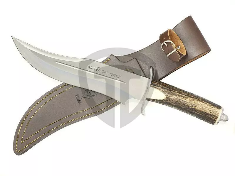 Elegantní lovecký nůž od španělské firmy Muela vyrobený z molibden vanadiové oceli o tvrdosti 58 - 61 HRC. Ostří ve tvaru vlny dává noži vynikající řezné vlastnosti. Nůž má oboustrannou kovovou lehce prohnutou záštitu stříbrné barvy. Rukojeť je z jednoho kusu parohu, patka rukojeti je kovová ve stříbrné barvě zakončena ozdobnou maticí. S nožem je dodáváno kožené pouzdro se zapínáním na přezku s opaskovou sponou.