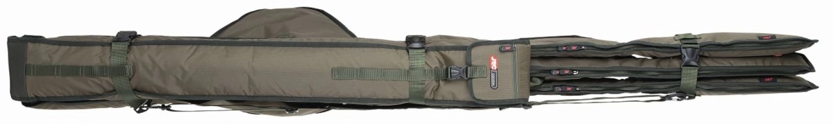 Díky všestrannosti obalu jej můžete kombinovat s obaly jiných značek, což ho opět dělá jedinečným. Jednoduše máte jednodílný obal na pruty od jiné značky, tak ho vložíte do tohoto obalu a dál už nemusíte nic řešit, protože v obalu je dostatek místa. Dále mezi pruty do obalu můžete volně vložit deštník, deštníkový bivak (brolly), prostě cokoliv na co si vvzpomenete. Se vším si tento velikán poradí. Nakonec vše sepnete popruhem a můžete vyrazit k vodě.