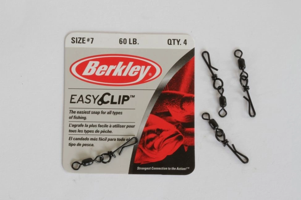 BERKLEY Obratlík s karabinou MC MAHON EASY CLIP SNAP/SWIVELS 7 (27,24kg) 4ks