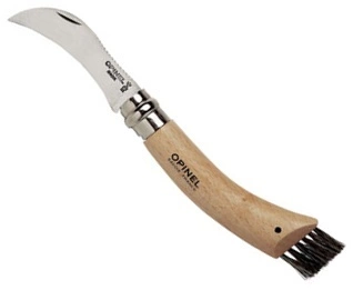 Houbařský zavírací nůž Opinel s rukojetí z bukového dřeva a čepelí z nerezové oceli, vybavený pojistkou ViroBlock v dárkovém balení s pouzdrem. Délka čepele je 8 cm. Štěteček na čištění hub.