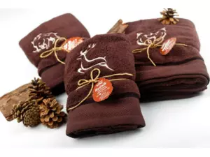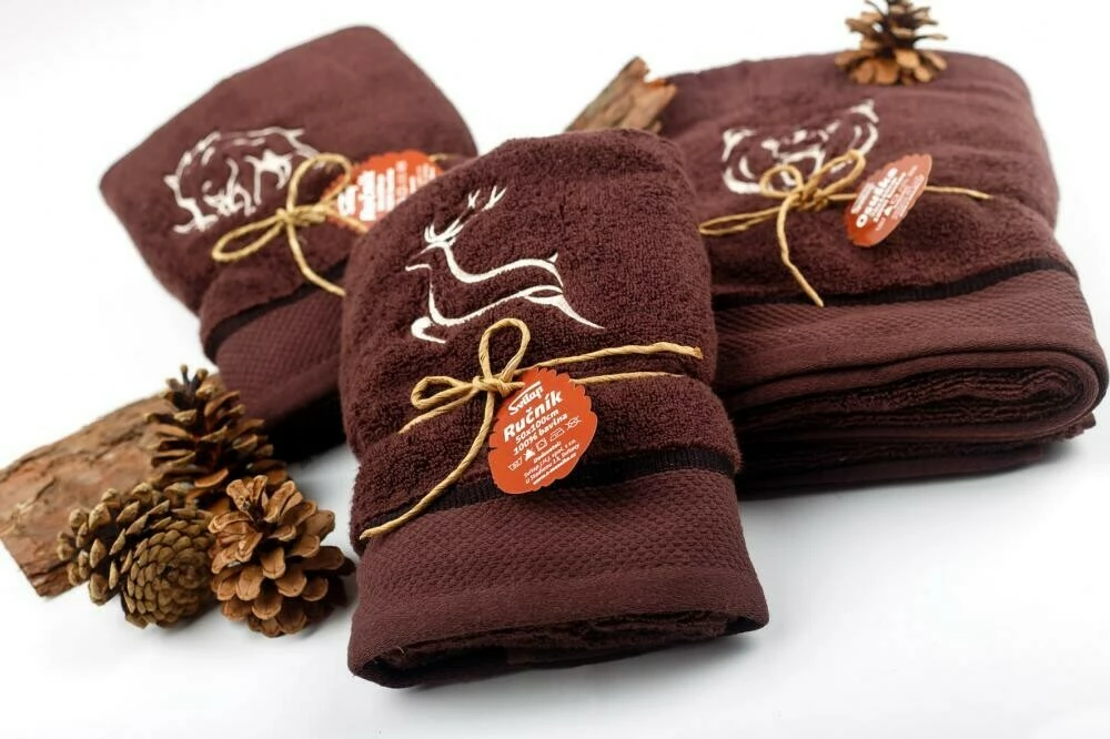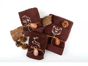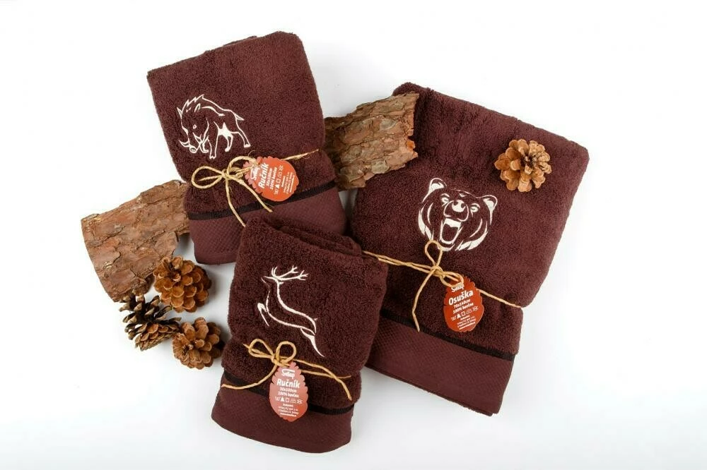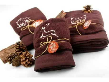Osuška je ušita z kvalitní mikrobavlny SLEEP WELL® v tmavě hnědém provedení, doplněna výšivkou jelena.